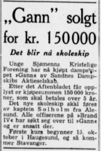 Ble 2. styrmann ifølge artikkelen i Haugesunds Avis, Bildet hentet fra boken om skoleskipet Gann