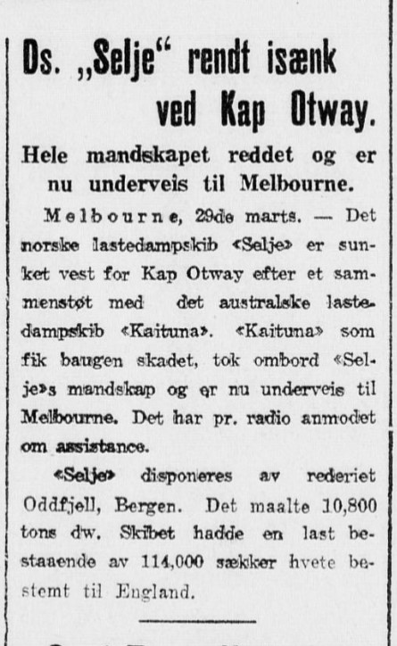 Vi antar at han var ombord en gang mens skipet var Odfjell sitt. 1923 til det skitet navn til Selje
