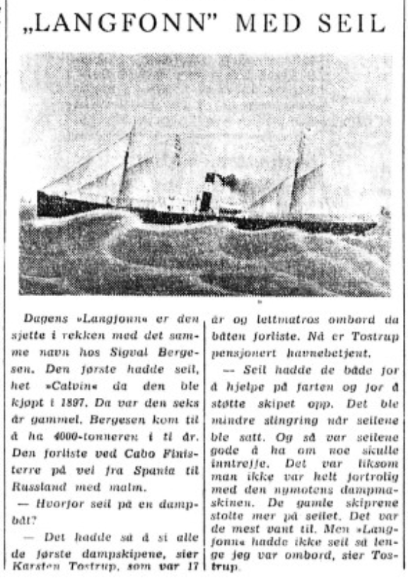 I August 1907 fik jeg hyre med D/S Langfond ca 3500 tonn tilhørende Sigval Bergesens rederi. Den var ventende fra Canada til Preston i England med trelast. Vi reiste helt mandskab untat 1ste Maskinist og Styrmand der blev staaende ombord. Herfra reiste vi med gamle D/S Venus til Newcastle og derfra til Preston med jernbanen. Turen gik bra og kom vi vel frem til Preston, men de vi om kvellen ville ha mat paa logihuset fik vi ikke, da innehaveren av Logihuset hadde ordre fra Skipperen om kun at gi os logi men ikke mat. Skipperen hadde tat inn paa et hotel, men viste ikke hvor det var. Saa der blev ingen mat for os den kvell som ingen penger hadde. Neste dags formiddag kom vi ombord, og der fik vi mat og godt stel. Skibet var greit og kjække folk. I Preston blev trelasten losset, hvorefter vi gik ballasted til Antwerpen. I Antwerpen blev vi liggende en måned, da der var havnestreik, saa alt arbeid i dokkerne var instillet.
