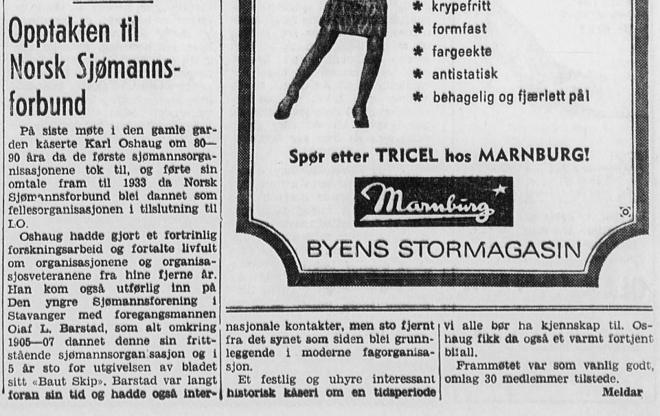 Artikkel om Olaf Barstad og Baut Skip - Rogalands Avis 27/4-1967