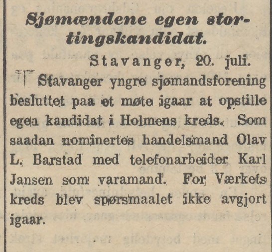 Olaf Barstad - Dagbladet 20/7-1909